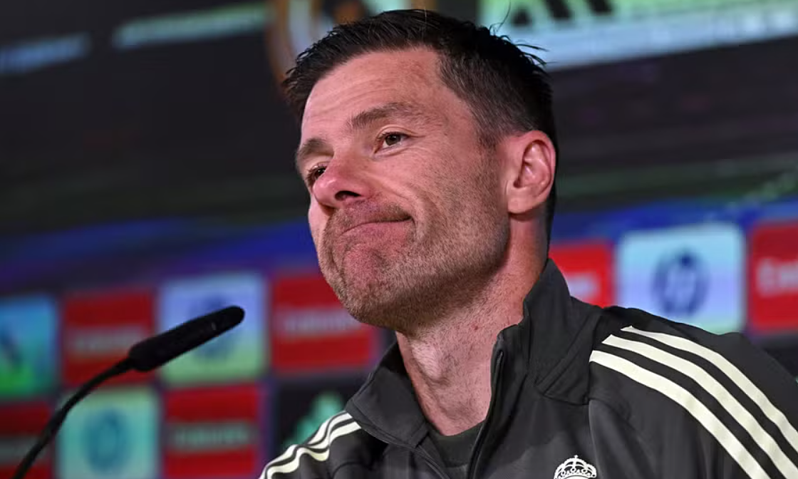 HLV Xabi Alonso trong buổi họp báo trước trận Real Madrid gặp Barca ở vòng 10 La Liga. Ảnh: AFP