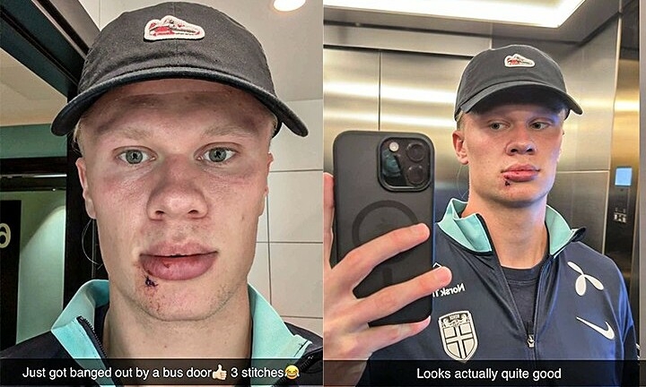 Khi bước ra từ cửa sau xe buýt tại khách sạn ở Oslo, Haaland bất ngờ bị cửa khoang hành lý bật trúng mặt. Vết rách dưới môi khiến trung phong 25 tuổi chảy máu nhiều và phải khâu ba mũi. Haaland bị cửa khoang hành lý bật trúng mặt và bị rách môi. Ảnh: […]