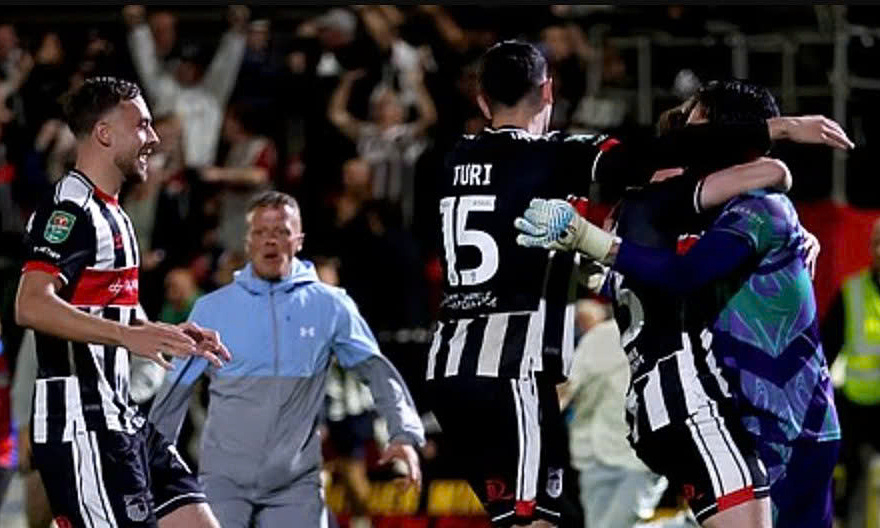 Đó là lý do hàng nghìn khán giả Grimsby tràn xuống sân Blundell Park sau cú đá hỏng luân lưu cuối cùng của Bryan Mbeumo. Chủ nhà mở hội, còn đội khách phải nhận cú sốc lớn. Man Utd bị loại khỏi Cup Liên đoàn, khi những ông lớn như Liverpool, Arsenal, Man City, Chelsea, Tottenham và Newcastle còn chưa thi đấu giải này.