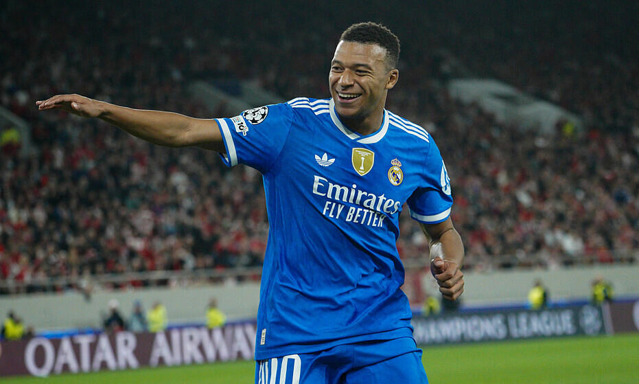 Trong trận Real thắng Olympiakos 4-3 ở lượt năm hôm 26/11, Mbappe ghi cả bốn bàn cho đội bóng Tây Ban Nha. Anh trở thành cầu thủ Real thứ tư ghi từ bốn bàn trở lên trong một trận Cup C1/Champions League, sau Alfredo Di Stefano (vào lưới Sevilla năm 1958 và Wiener SC năm 1959), Ferenc Puskas (vào lưới Eintracht Frankfurt năm 1960 và Feyenoord năm 1965) và Ronaldo (vào lưới Malmo năm 2015).