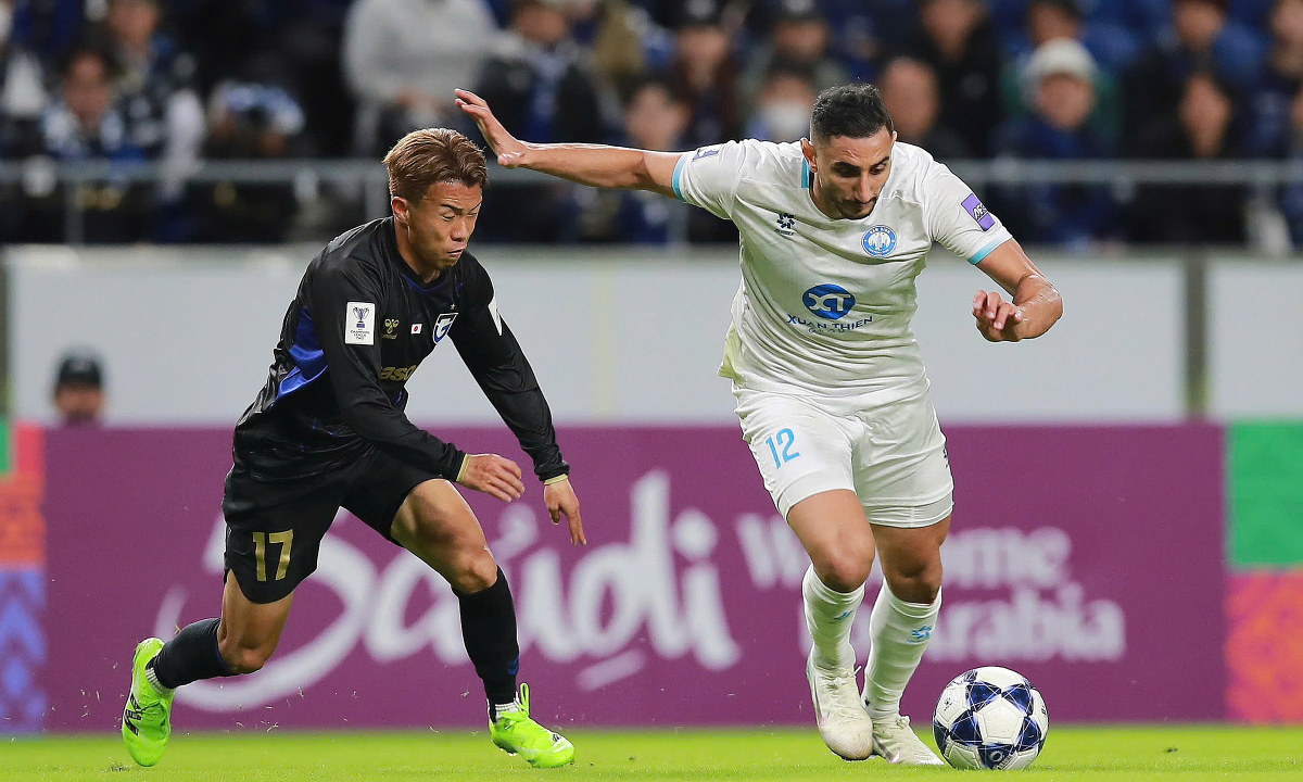 Nam Định (áo trắng) thua Gamba Osaka 1-3 ở lượt ba bảng F AFC Champions League Two 2025-2026 trên sân Suita, Nhật Bản ngày 22/10/2025. Ảnh: Quang Đương