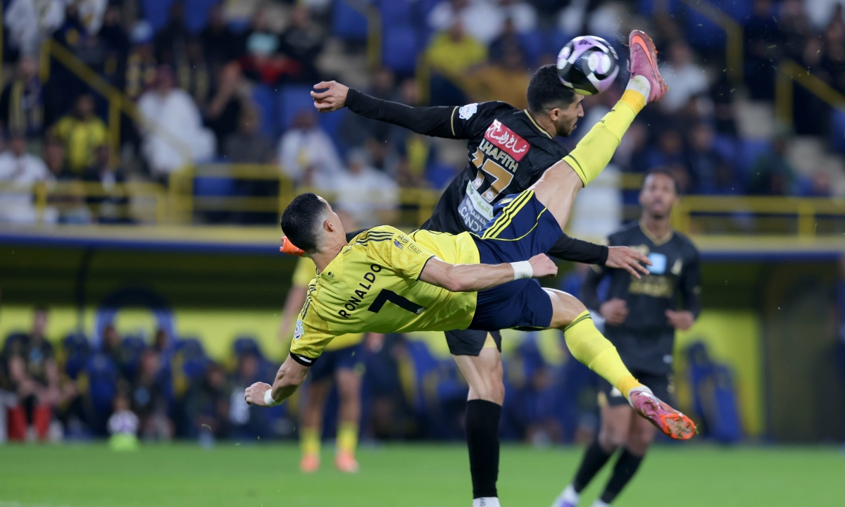 Cú ngả người móc bóng thành bàn thắng của Ronaldo cho Al Nassr vào lưới Al Khaleej ở vòng 9 Saudi Pro League trên sân Al Awwal, thành phố Riyadh, Arab Saudi tối 23/11/2025. Ảnh: Al Nassr